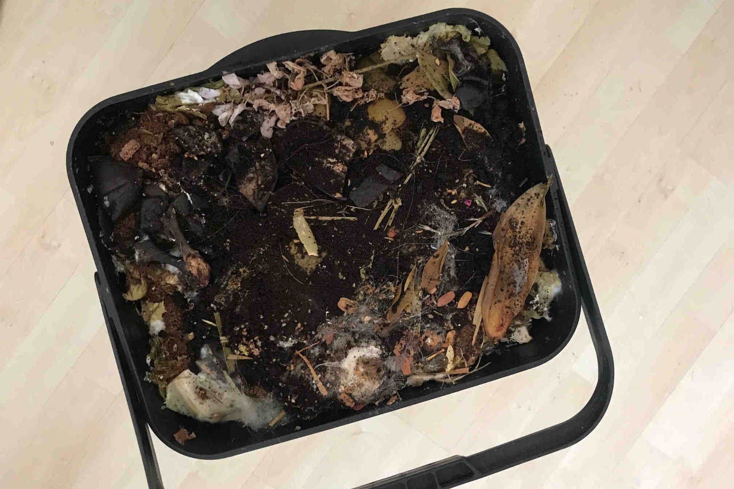Ich habe es zuerst mit einer Wurmkiste versucht. Meine Wurmkiste hab ich selbst gebaut, was ziemlich einfach ist: Ein paar Holzbretter, in die man Löcher hineinbohrt und dann mit Fließ auskleidet – so ungefähr. Gefüllt ist sie mit Erde in der ziemlich viele Würmer sind, eine Art Regenwurm. Um genau zu sein, hatte ich in meinem Startpaket 500 davon. Dann kann man die Würmer mit Abfall füttern. Toll war, dass die Kiste in unserer Küche stehen konnte, nett aussah und der Inhalt nach Waldboden roch. Weniger toll fand ich, dass wir viele Abfälle hatten, die sich nicht für die Wurmkiste eigneten und nach jedem Urlaub eine Fliegenplage herrschte.